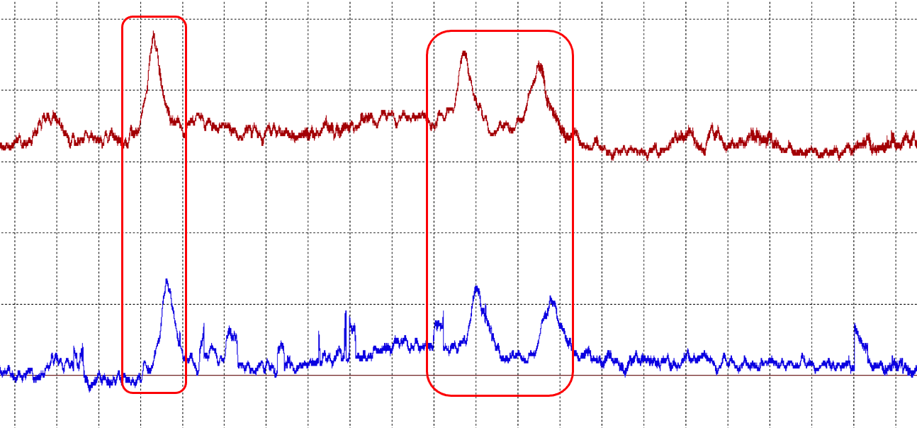 圖一:鋼絲繩無(wú)損檢測(cè)銹蝕鋼絲繩波形圖: