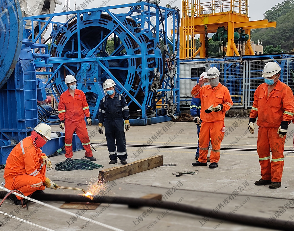 2.通過(guò)檢測(cè)后確認(rèn)銹蝕部位,前端出現(xiàn)銹蝕的鋼絲繩去掉,以確保鋼絲繩的**使用。