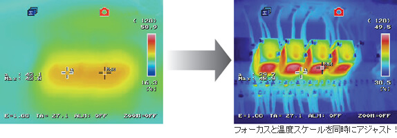 熱像和可見圖像的“平行顯示”和“復(fù)合顯示”可用500萬像素可見相機(jī)