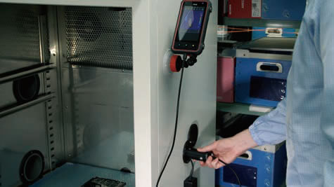 攝像頭配有LED燈,即使在黑暗的地方也可以識(shí)別物體并捕捉明亮的可見(jiàn)圖像。 可以使用觸摸面板執(zhí)行遙控器,同時(shí)使用已取出的控制器檢查測(cè)量狀態(tài)。