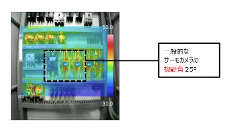 使用70°廣角鏡頭,即使在狹窄的路徑上,也可以一次性檢查和記錄配電盤的整個(gè)圖像 無(wú)需調(diào)整焦距,因?yàn)橄鄼C(jī)不會(huì)將建筑物移離攝影師手50米