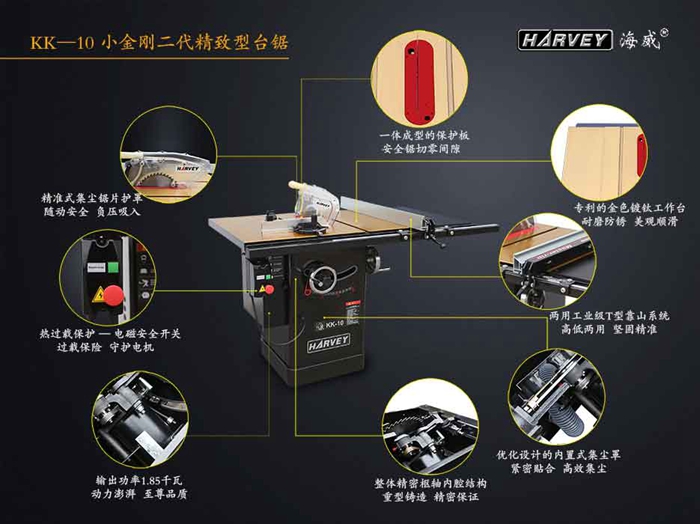 小金剛2代臺鋸KK10-II是海威多年來技術(shù)和工藝研究的結(jié)晶,其**的工藝、精度、**性和操作舒適性都處于世界同類產(chǎn)品的上等水平。本系列臺鋸適用于各種精密實木加工,廣泛應用與制作上等家具、櫥柜、樂器和工藝品等木器,也是廣大木工愛好者的必備利器,被木工界稱為“木工房King”,在過去的五年中,已有超過25000臺HW110系列臺鋸銷往世界30多個國家。