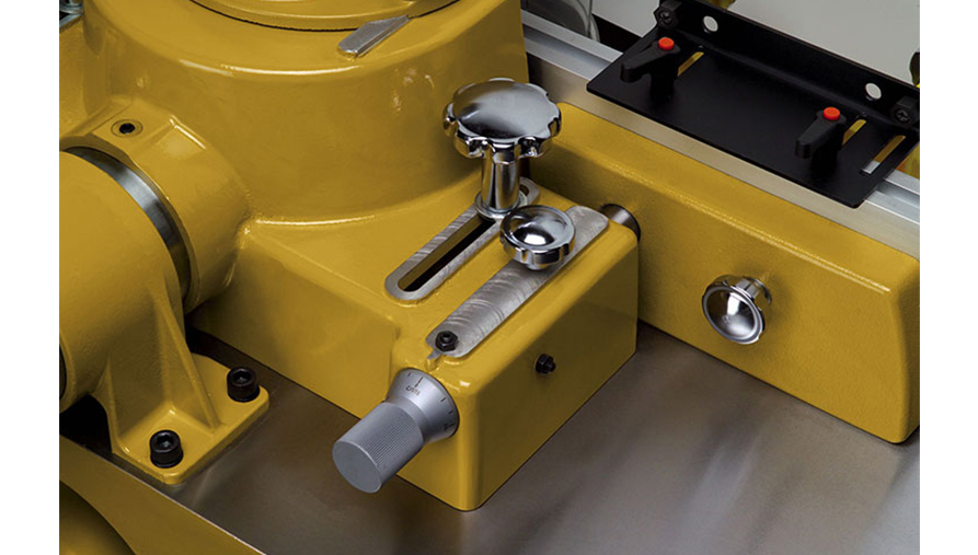 工業(yè)級靠山系統(tǒng),配合旋轉(zhuǎn)把手可以調(diào)節(jié)靠山位置。