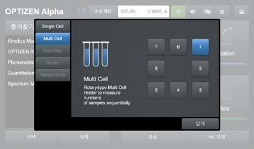 5.不用進(jìn)入模式就可以選擇比色皿類型來進(jìn)行測量及監(jiān)控, 快捷菜單上的比色皿類型圖標(biāo)會隨著比色皿類型狀態(tài)或是位置發(fā)生變化, 可方便地確認(rèn)比色皿的目前狀態(tài)