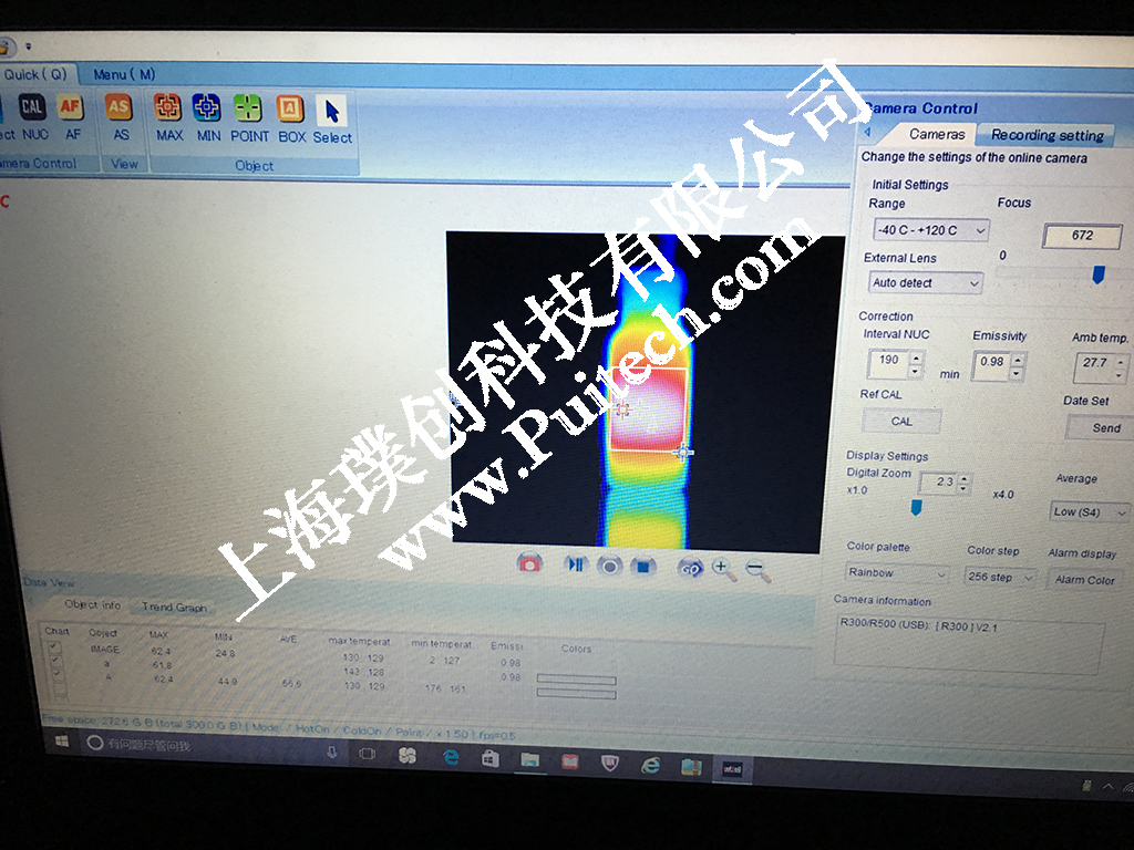 同濟大學生物醫(yī)學工程系使用NEC紅外熱像儀對液體試劑進行加熱后檢測熱分布